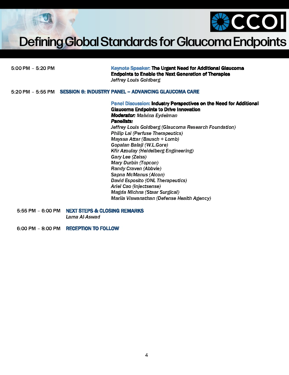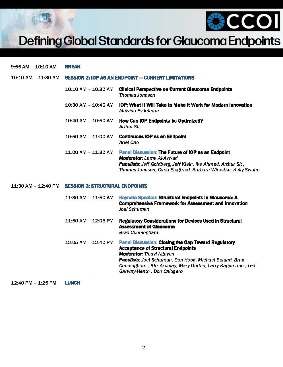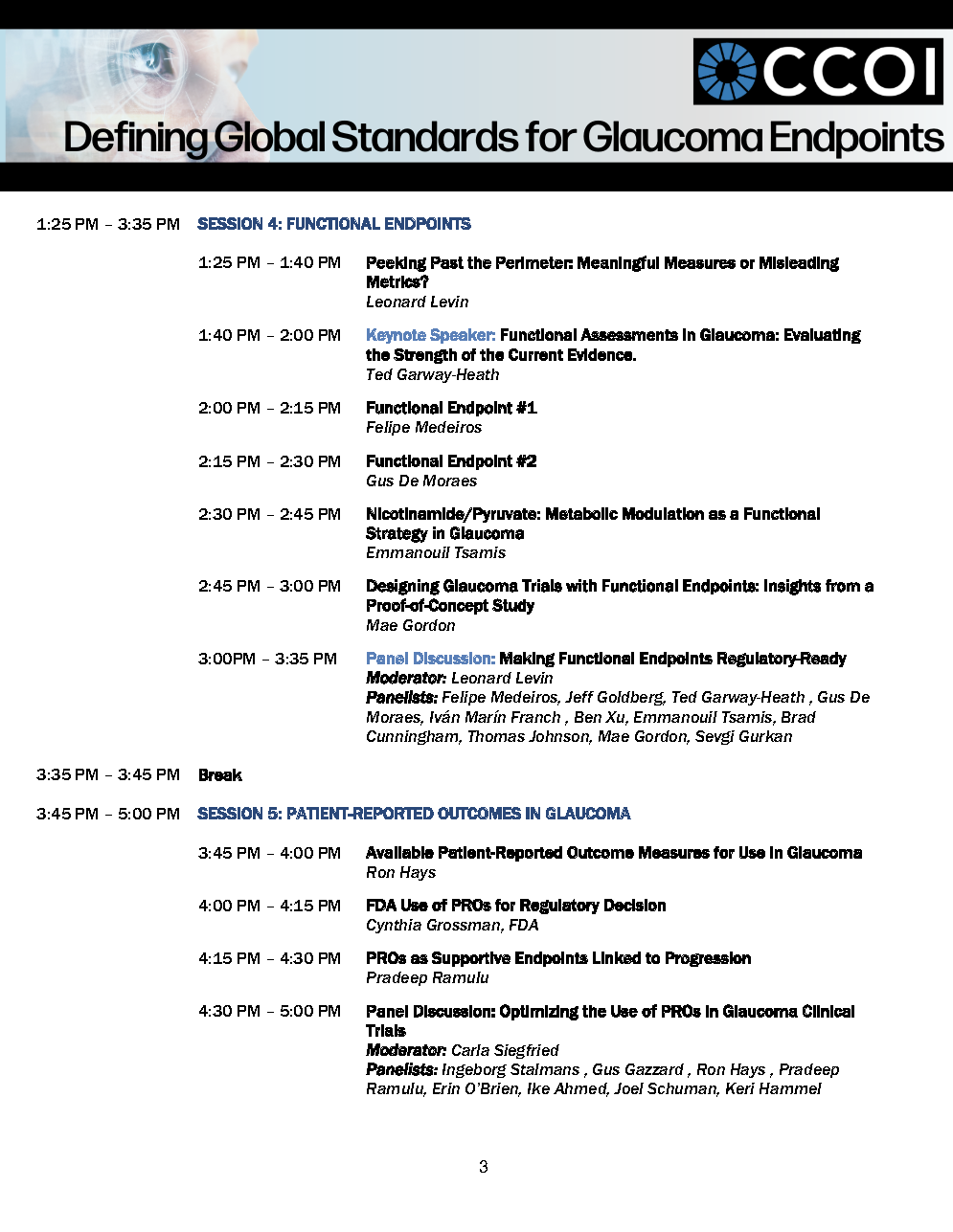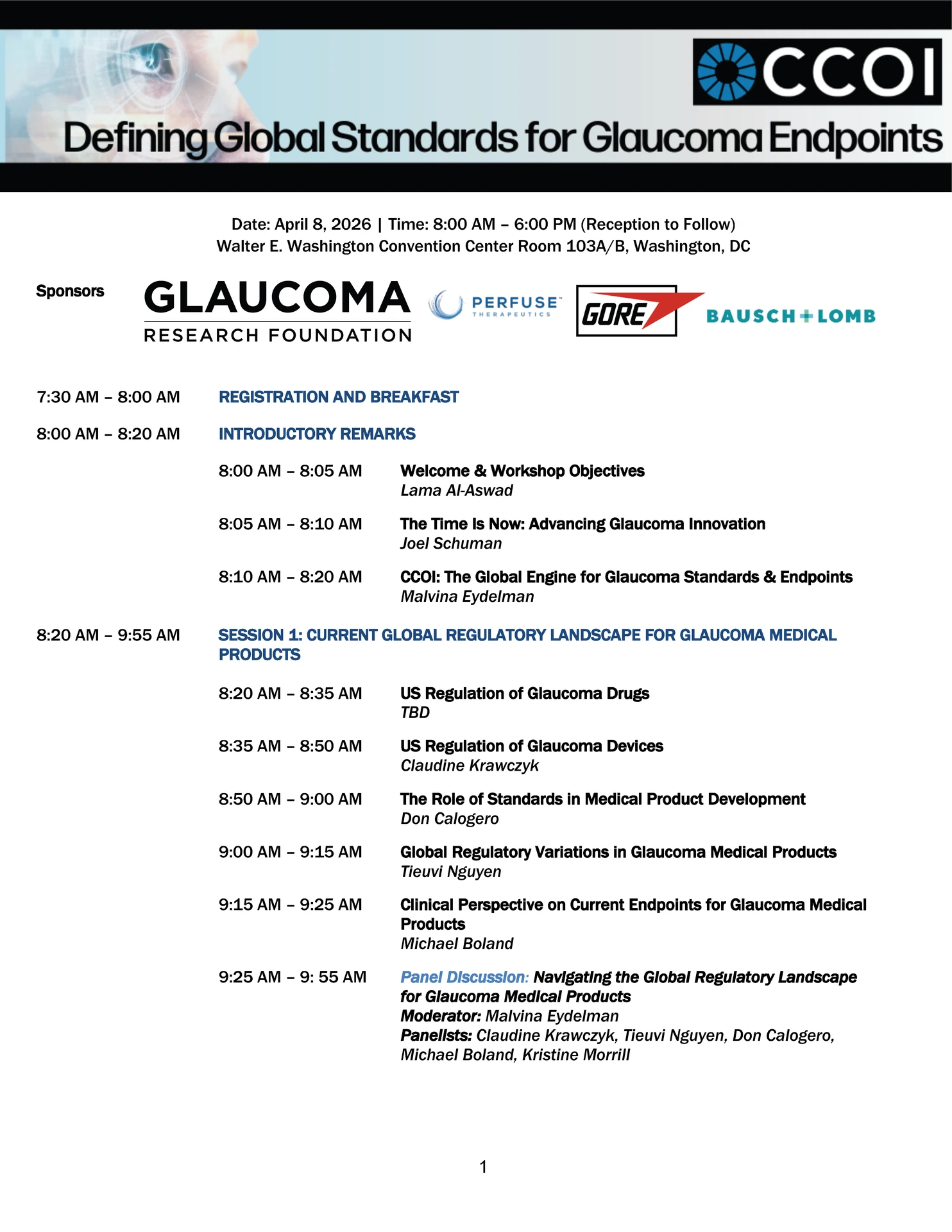 CCOI Workshop: Defining Global Standards for Glaucoma Endpoints